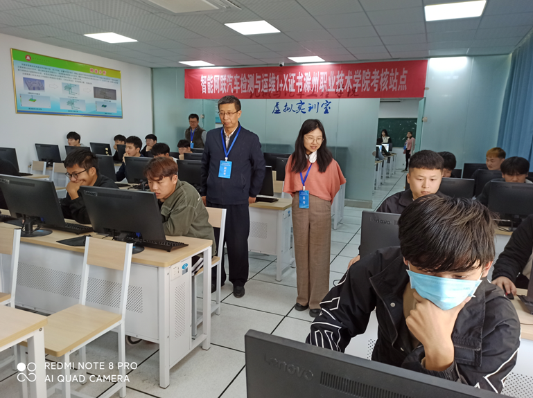考试期间,机械与汽车工程学院院长张信群,副院长杨章林前往W205机房进行巡考,全面了解考试设备运转、考场布置等情况,强调考场纪律。在了解本场考试是本年度最后一场智能网联汽车检测与运维考试后,对2022年所有参与1+X考证工作老师的付出给予充分肯定。