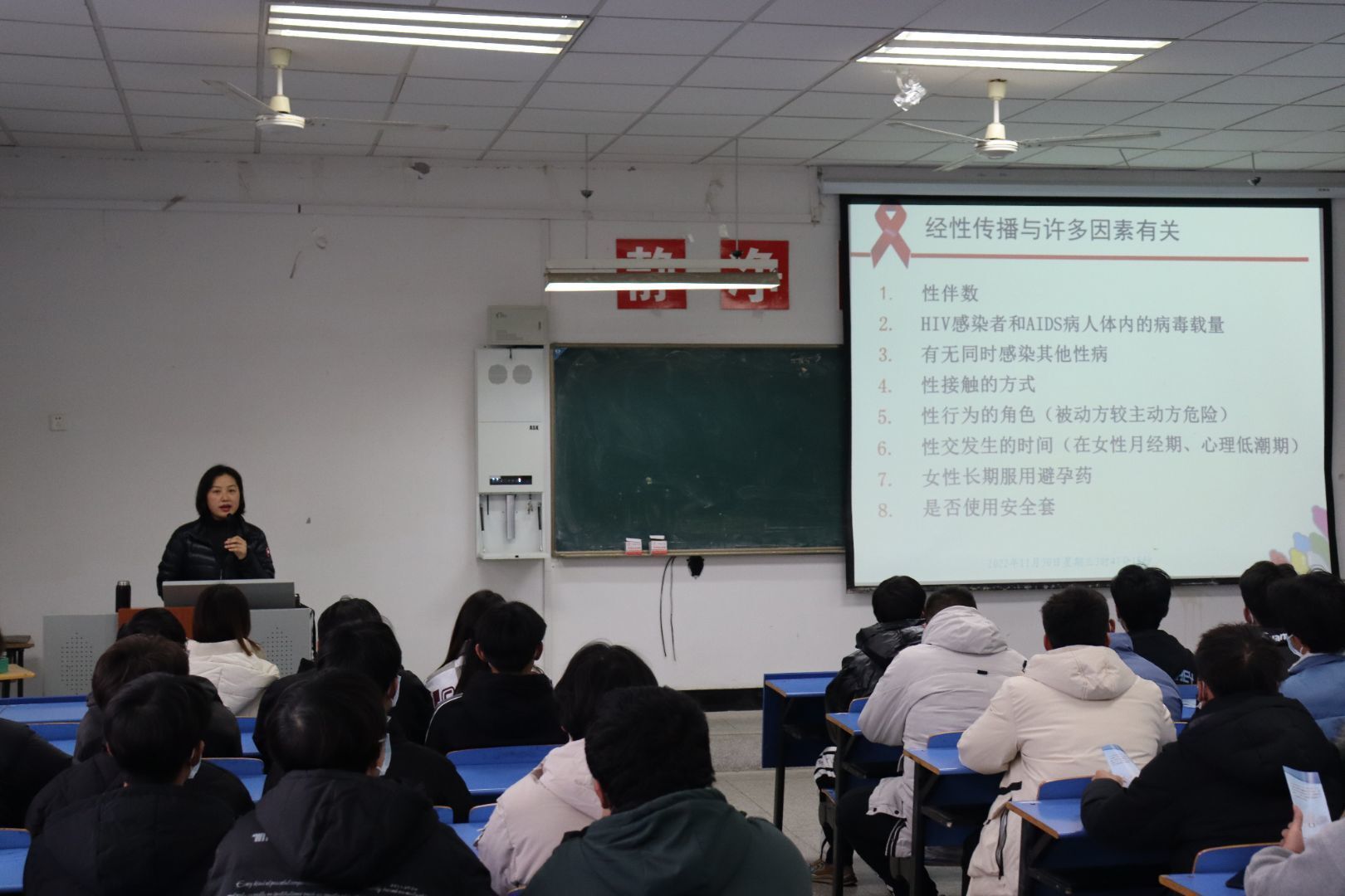 为增强同学们对艾滋病的防范意识,倡导大学生科学健康的行为方式,在第35个“世界艾滋病日”来临之际,机械与汽车工程学院举办“共抗艾滋,共向健康”艾滋病科普讲座。特别邀请滁州市疾控中心黄卓君老师讲解艾滋病防治知识,学院150余名师生现场聆听讲座。