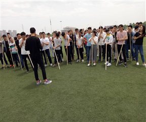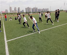 我院武术类协会下辖武道、太极、双节棍、咏春四个单项体育社团,在指导老师杨宝雷的带领下,将武术选项课与课余体育锻炼有机结合,全院选项武术课的400余名同学在正常进行课堂学习的基础上积极参与武术协会第二课堂锻炼,以主人翁的态度投身于社团组织的各项体育及公益活动,走向操场、服务大众,同学们在掌握武术技能的同时积极参与社会实践,健身、健心,收到了良好的教学效果。