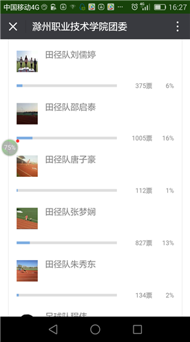 本次评选从12月初开始启动,前期对全院八支训练队推选的16名运动员及在运动会上表现突出的4名运动员共20人,体育部制作展板在运动场橱窗公示,同时把20位候选人的情况以微信图片的形式推送到学院微信公众平台,供同学们了解,特别是在微信投票环节得到了全院广大同学的广泛参与,在一个星期的投票时间段共有来自全院6348名同学参与投票。其中田径队邵启泰同学以1005票成为本次票选的票王,一时间,这些在各条战线为学员争金夺银的运动员变成校园的小明星,成为广大同学们心目中的英雄和模仿对象。