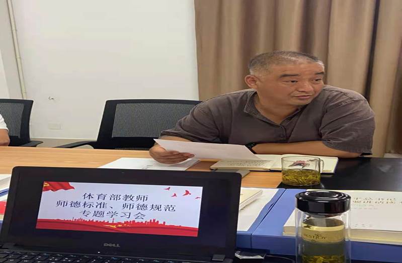 为贯彻落实校党委关于《Beat365唯一官方网站师德专题教育工作实施方案》(校党发〔2021〕30号)文件精神,进一步加强师德师风建设,打造风清气正的教育环境,努力形成一支师德高尚、作风正派、业务精良、学生满意的教师队伍,8月20日下午,体育部在体育馆党员活动室组织召开师德师风暨师德标准、师德规范专题学习会,部门全体教师参加,会议由党支部书记王厚红主持。