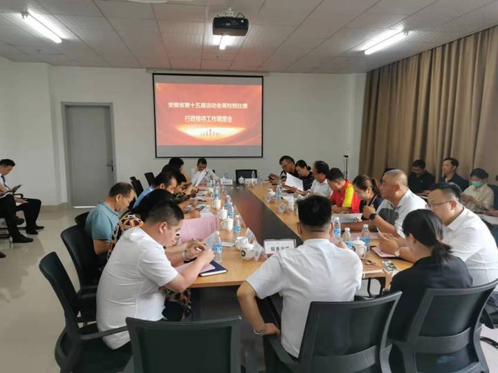 7月6日下午15:00在校体育馆二楼会议室召开了省十五运高校部比赛行政接待工作调度会,省十五运滁州承办指挥部相关成员单位、高校部比赛承办单位和高校部比赛接待酒店相关负责人参会,会议由高校部承办牵头单位体育部负责人孙强主持。