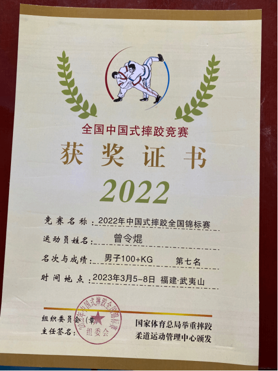 2023年中国式摔跤全国锦标赛在福建省武夷山市的比赛3月5日到3月8日圆满结束。经过激烈角逐,Beat365取得了一个第七名的优异成绩,同时荣获体育道德风尚奖,取得了竞赛成绩和精神文明的双丰收!