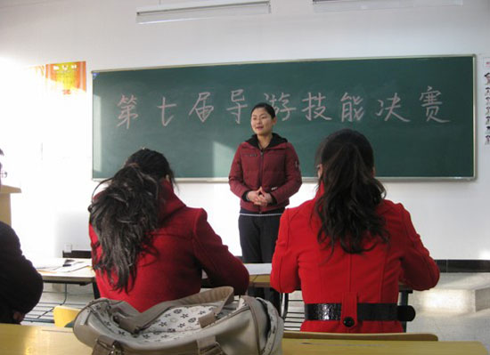 12月11日上午,经贸系旅管教研室导游技能大赛决赛在1225教室举行。经过前期初赛的激烈角逐,来自旅管专业的10、09两个年级的10位选手最后闯进了复赛。