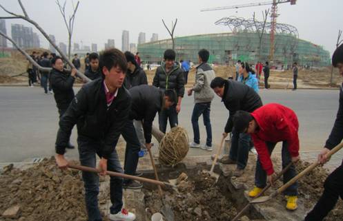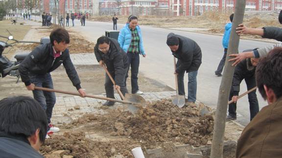 在我国第33个植树节到来之际,经贸系于3月11日下午在系党总支李书记的带领下,由各位辅导员与部分老师教师及同学门一道,共同进行了一场以“绿化环境,美化校园”为主题的植树活动。