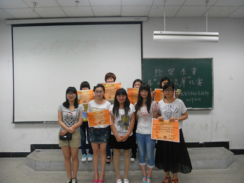 大赛经过大力宣传,征集到了许多来自各班级同学的摄影作品。6月4日所有作品以海报的形式在经贸系大厅开始评比,同学、老师皆可给喜欢的作品投上一票。经过两天的展出,6月5日评出了优秀作品,经贸系同学王坤获得了第一名,张青兰、王慧丹获得了第二名,严蓓、储文文、李颖获得了第三名,活动最后,获奖选手与评委合影留念!
