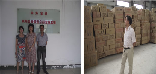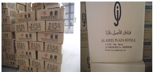 上图分别为金星实业生产的保温瓶内销(左)、出口(右)不同的包装规格