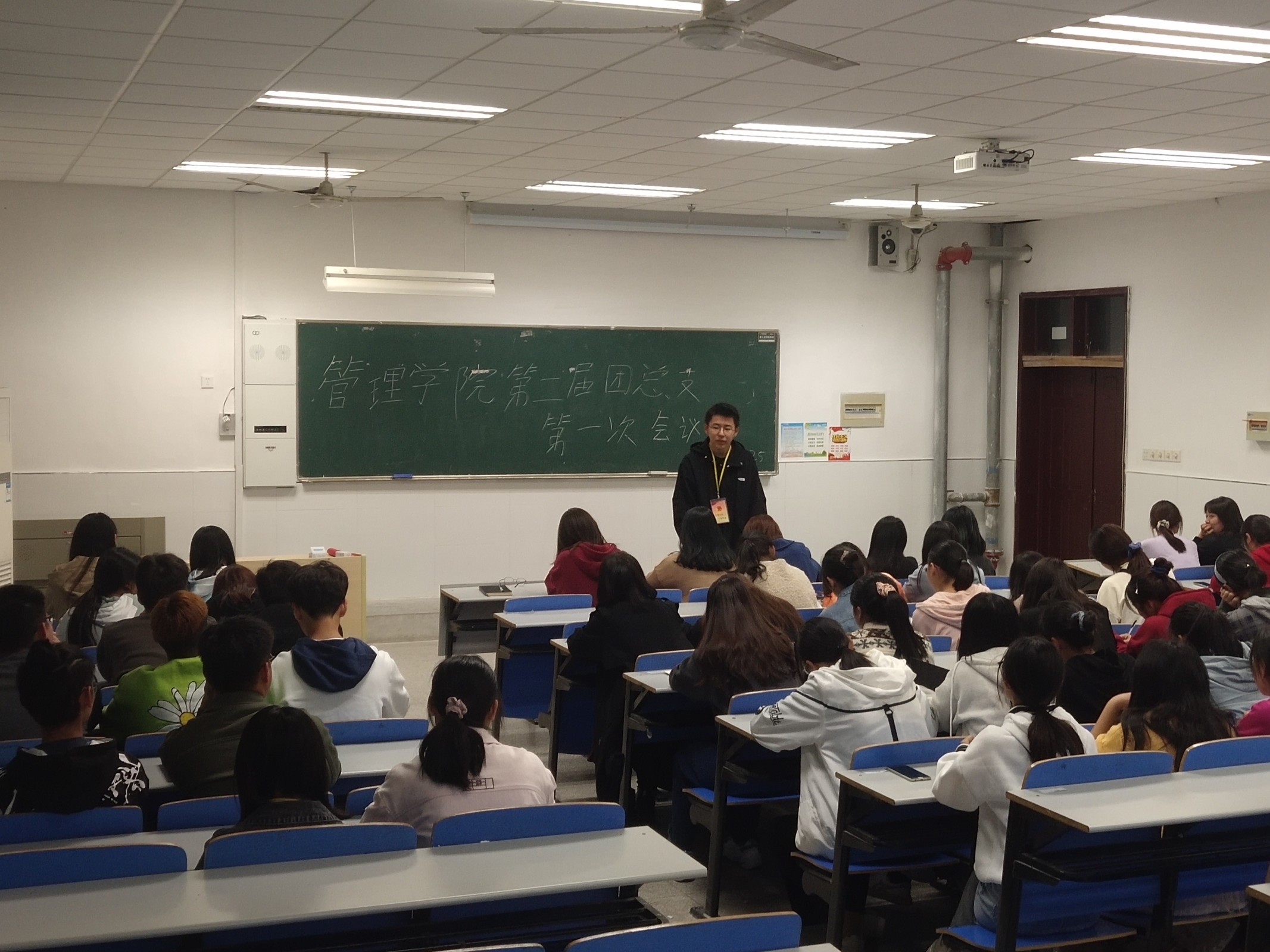 为进一步加强团总支工作,提高团总支干事的热情和工作质量,管理学院团总支于10月25日18:30在1119教室召开“管理学院第二届团总支第一次全体大会”,本次会议由学生团总支副书记王松主持,团总支全体成员参加。