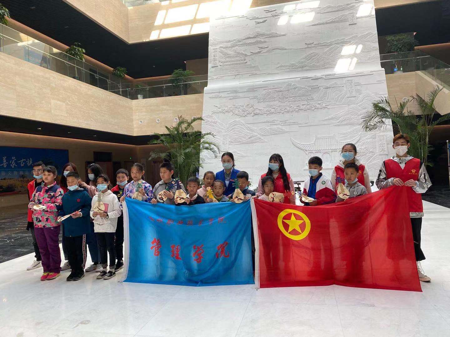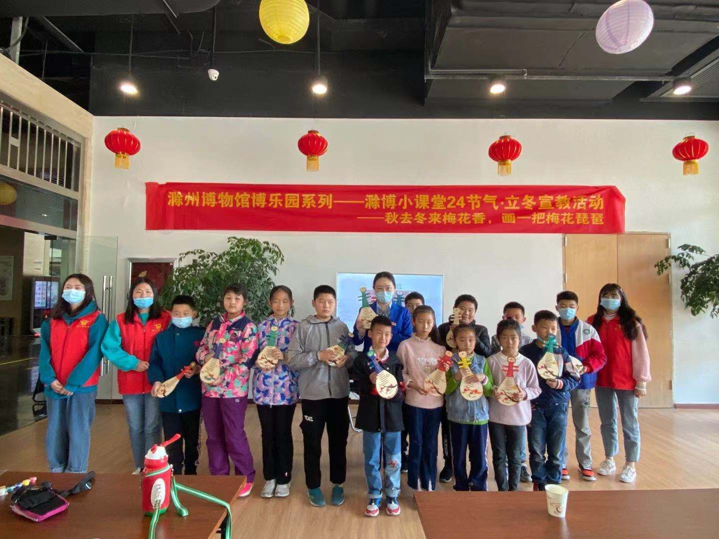 活动中讲解员通过视频现场给小朋友们介绍关于“立冬”节气风俗文化,志愿者们分发关于此次画琵琶活动的物品,帮助小朋友打开画琵琶的物品,协助孩子们画琵琶,让我们体验到了线下制作与文化相结合的乐趣。