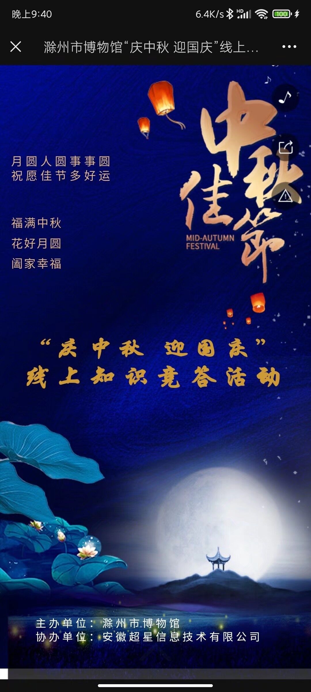 “每逢佳节倍思亲”,为使广大师生更多地了解中华民族传统节日的文化内涵,广泛挖掘与诠释中华传统节日的精髓。9月18日,管理学院的学子们在滁州博物馆的官网上进行了“庆中秋,迎国庆”答题赢好礼活动。