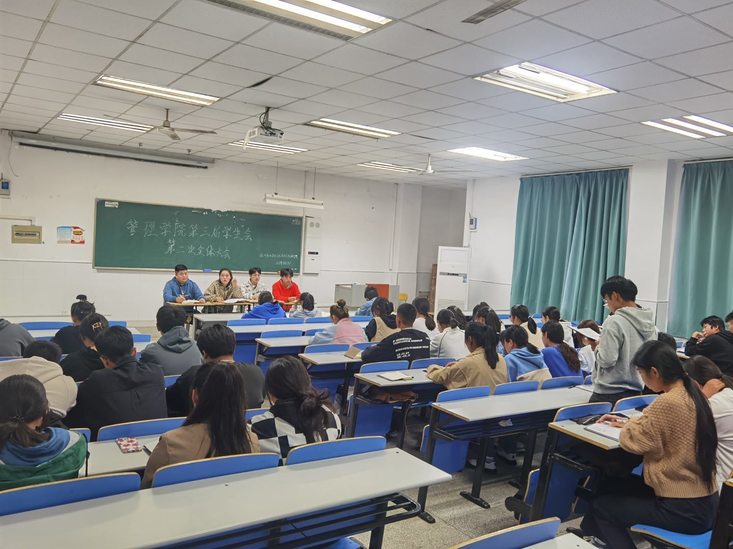 10月24日下午18点,管理学院学生会第二次大会在致真楼1101教室举行,由管理学院学生会主席王梦缘,管理学院副主席孔珺禾、殷茂源、马骏及学生会全体成员参加了此次会议。