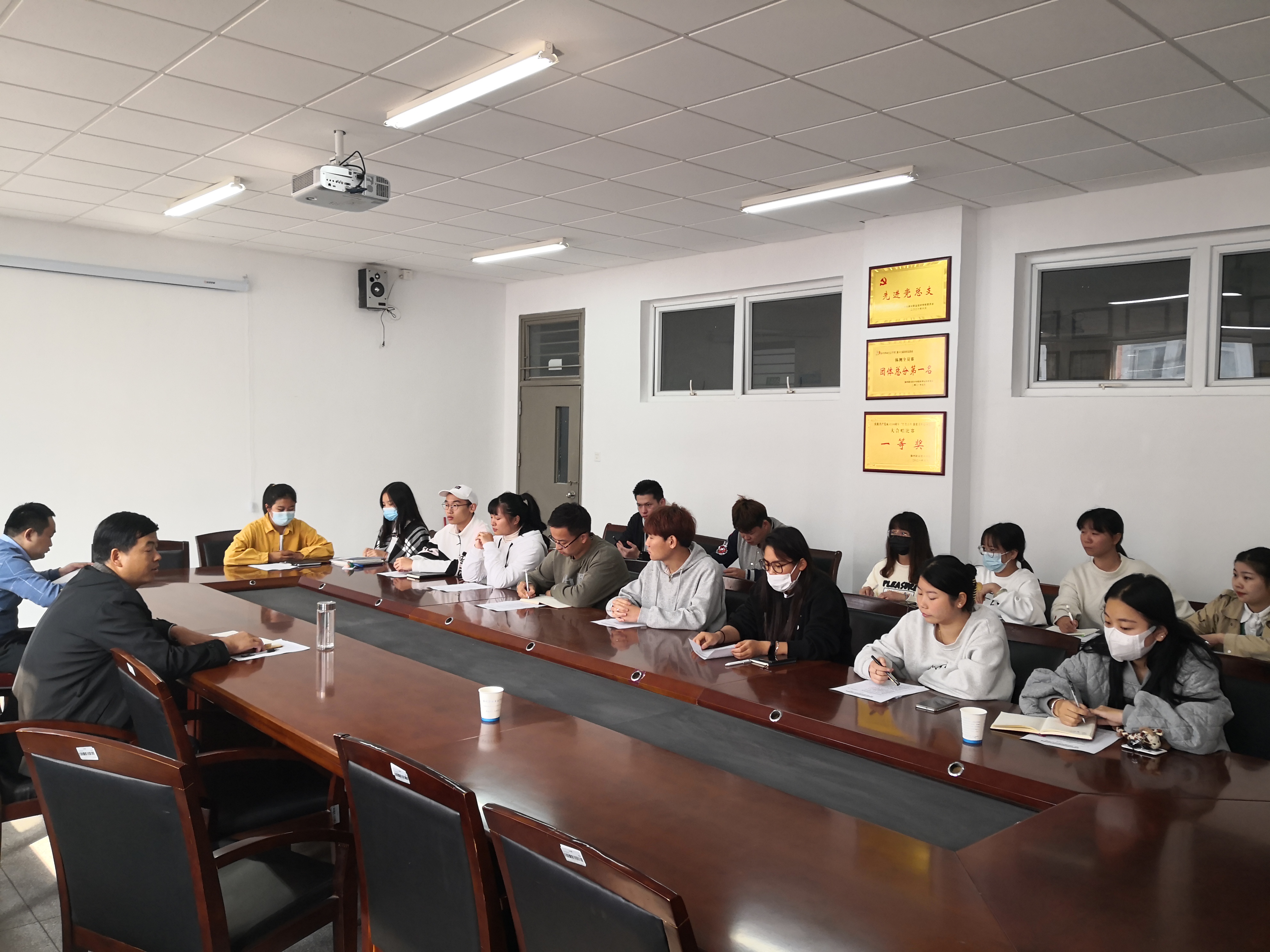 10月29日上午,管理学院在1405会议室召开2019级学生座谈会。会议由管理学院党总支书记耿学刚主持,2019级牵头辅导员黄凯和各班学生代表参加。