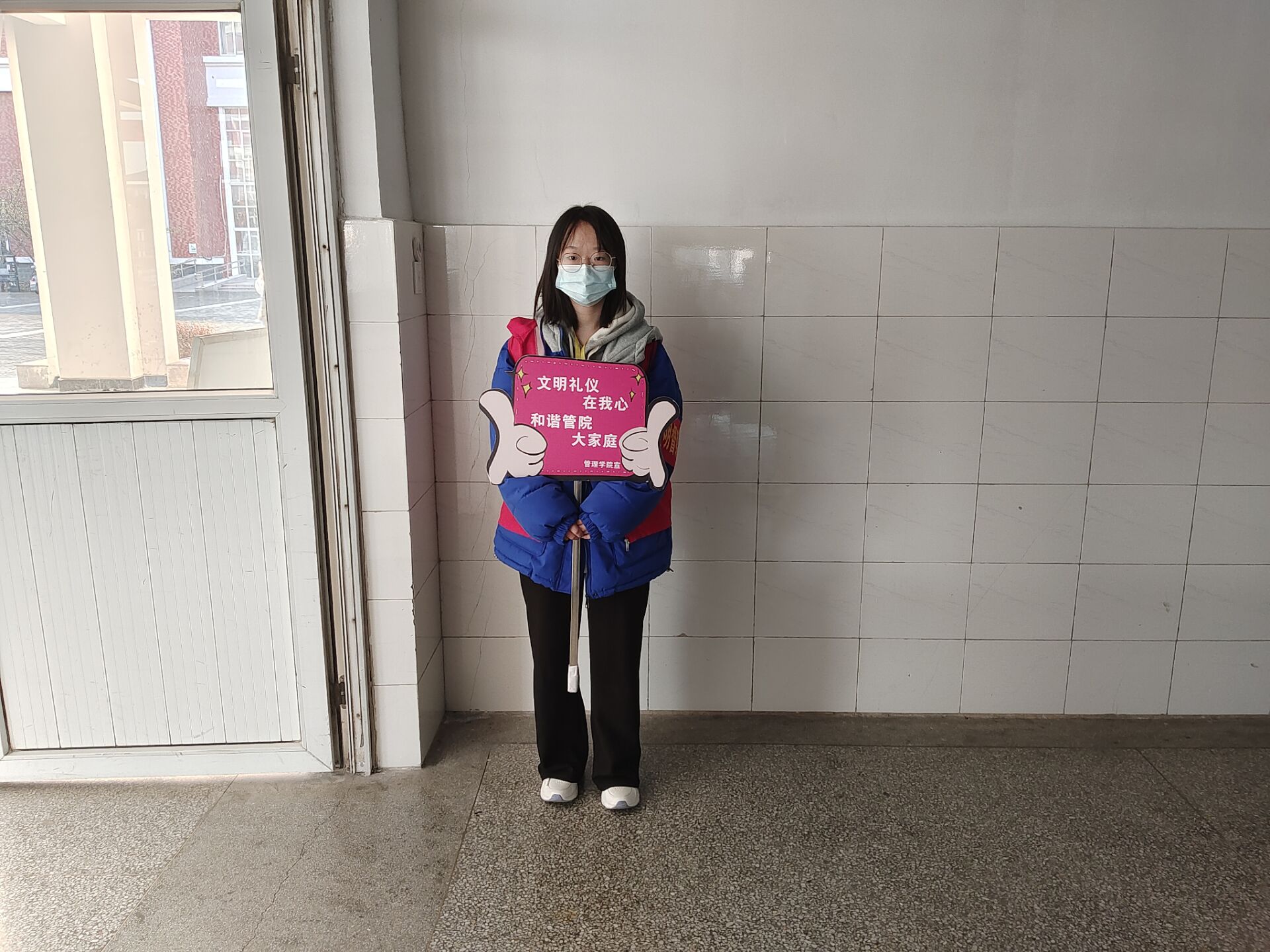 新年新气象,文明督察来报到。管理学院自2月21日起,每天安排教师督察员和学生督察员在1号教学楼进行文明督察工作。