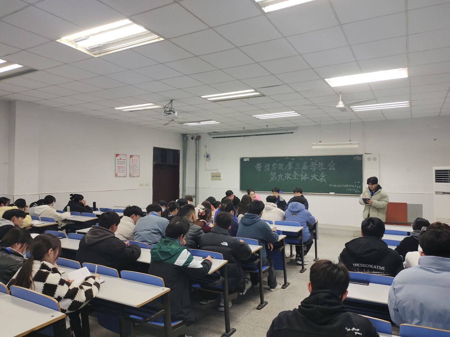 2022年2月27日,下午六点在致真楼1101,举行了第三届学生会第九次全体大会,学生会全员参加。