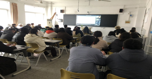 按照学校统一部署,3月22日上午管理学院1、2节课全部进行线上直播教学,其中2020级旅游管理班李贝贝老师的《旅游商品概论》采用教师在家线上授课,学生到教室观看大屏幕直播的形式学习。