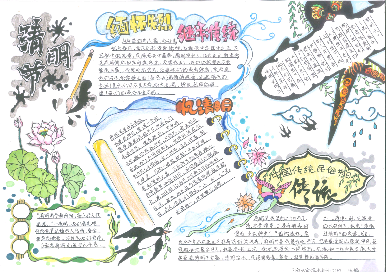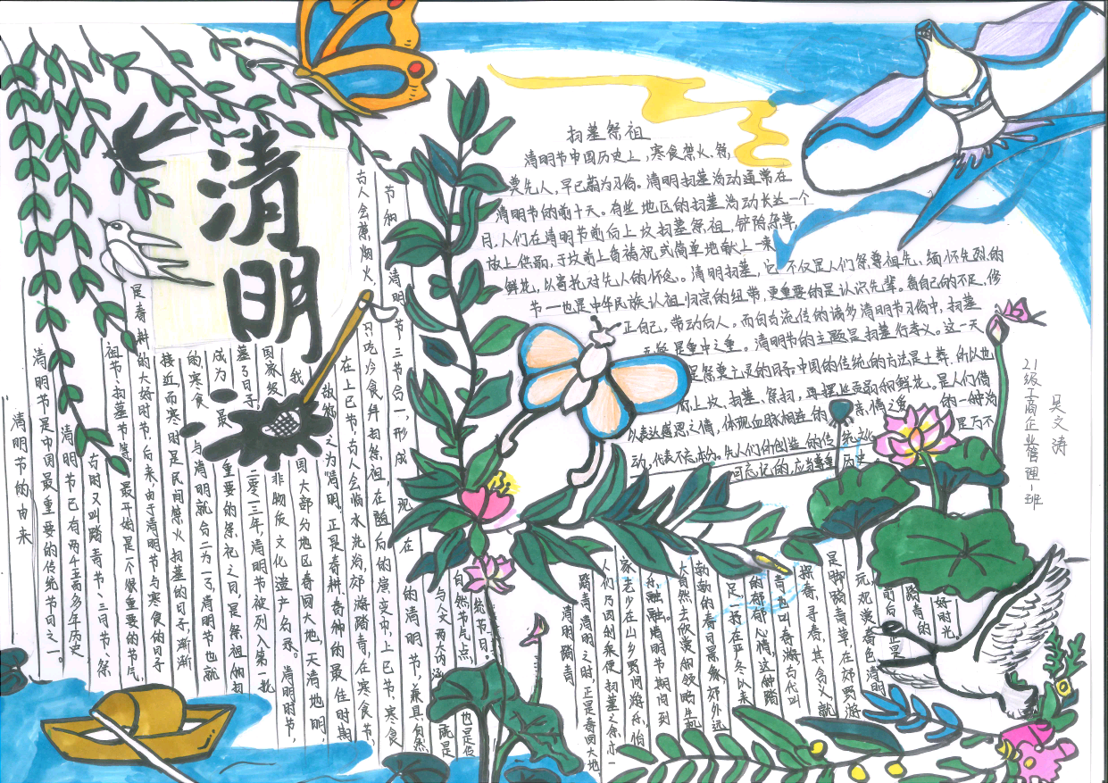 为了进一步弘扬中华民族传统文化,把我国传统节日的丰富内涵融入到同学们思想道德建设中,在传统文化中感受我国悠久的历史,管理学院团总支于2022年3月31日至4月6日,开展了“我们的节日——清明节”手抄报比赛。