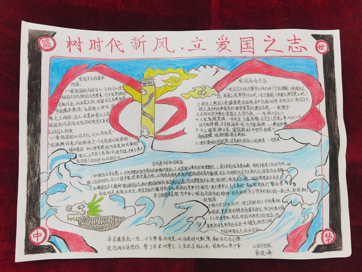 五月,是花开的季节,更是富有激情的季节。2022年5月4日,管理学院学生会举办“树时代新风,立爱国之志”手抄报比赛。