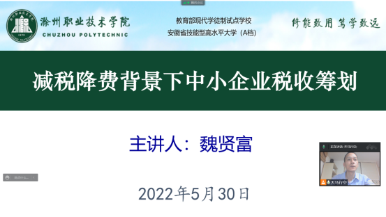 5月30日晚,管理学院成功举办了《减税降费背景下中小企业税收筹划》线上专题讲座。讲座由财务会计系魏贤富老师主讲,当晚Beat365会计专业近130余名学生通过腾讯会议聆听了讲座。