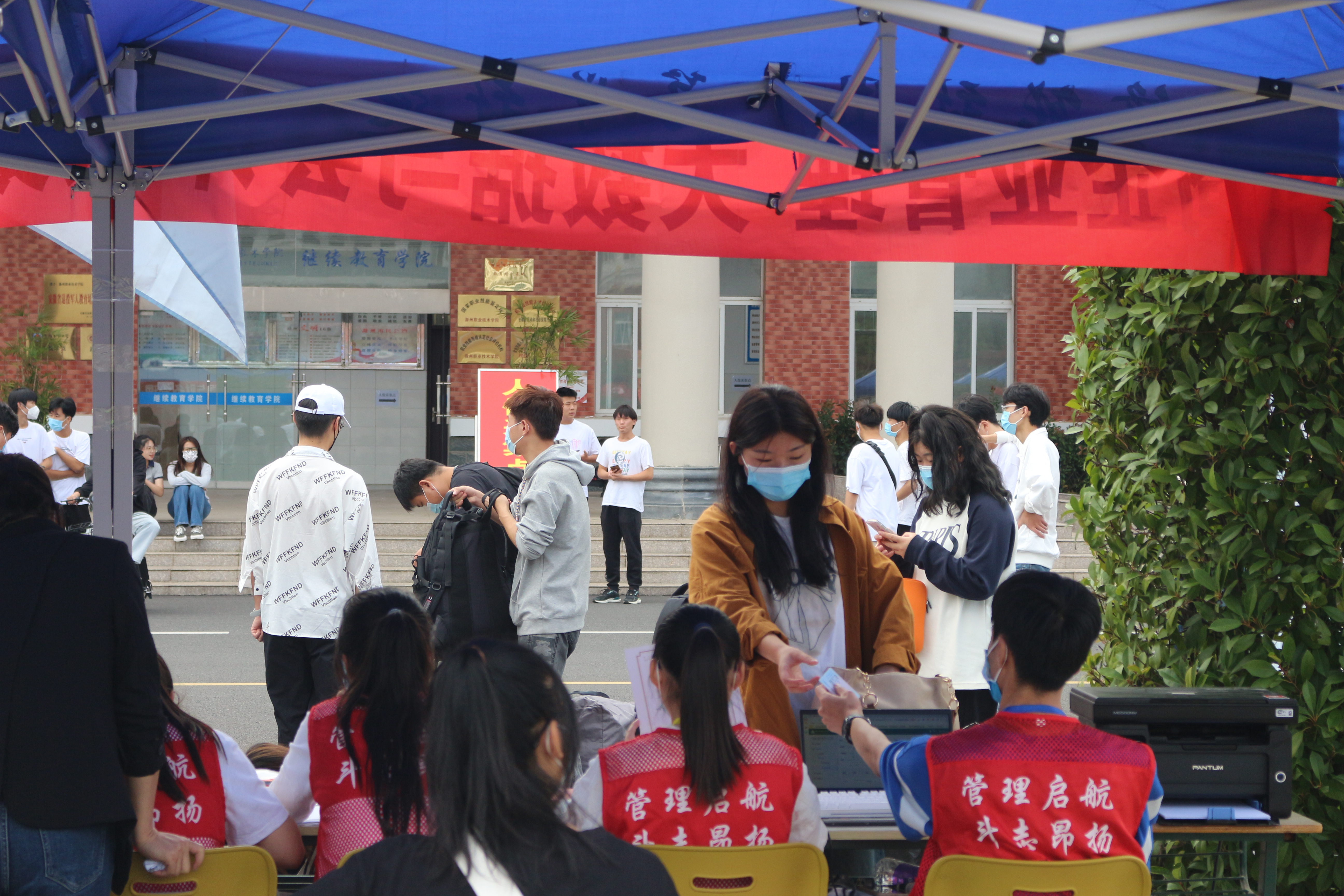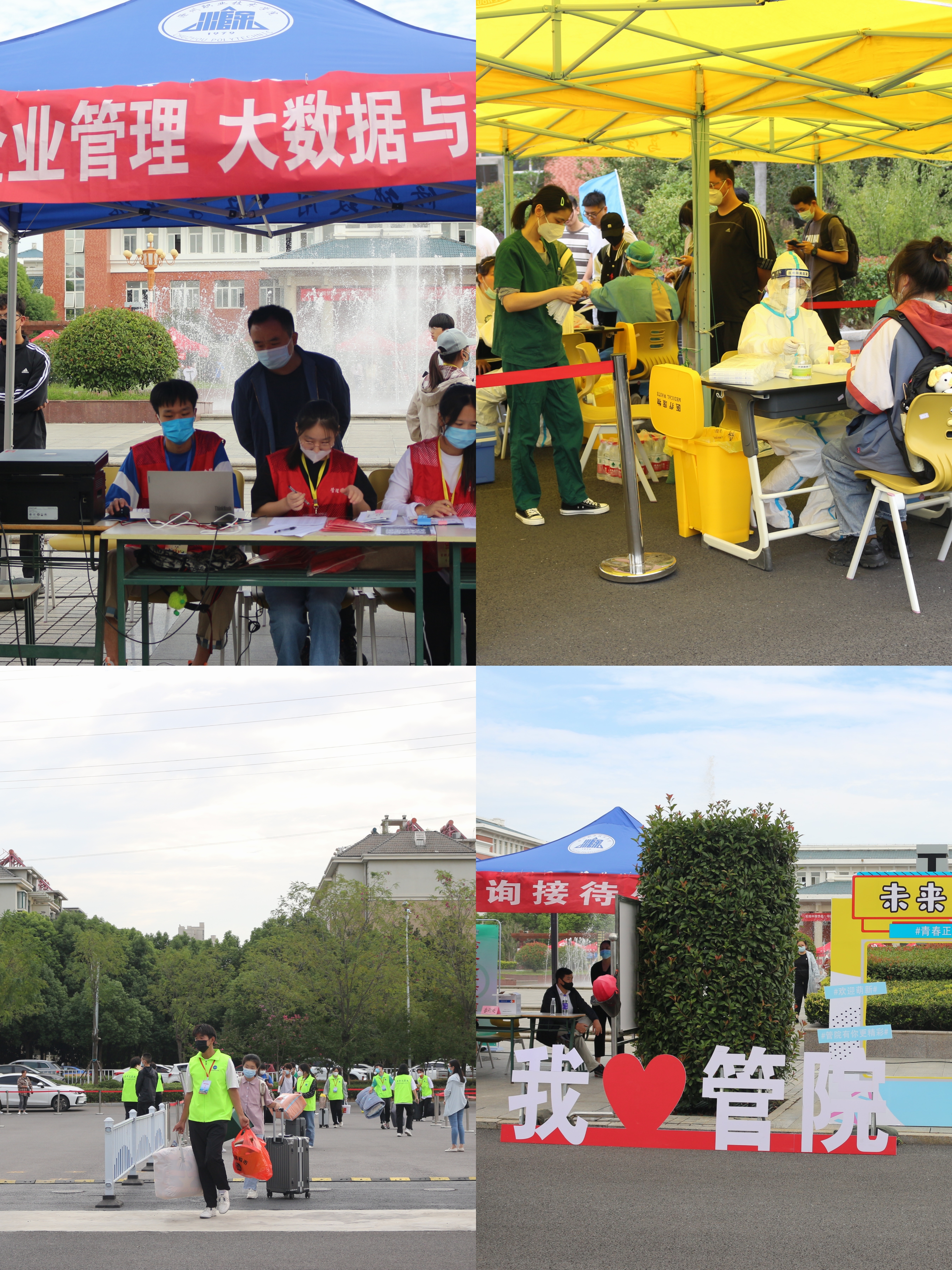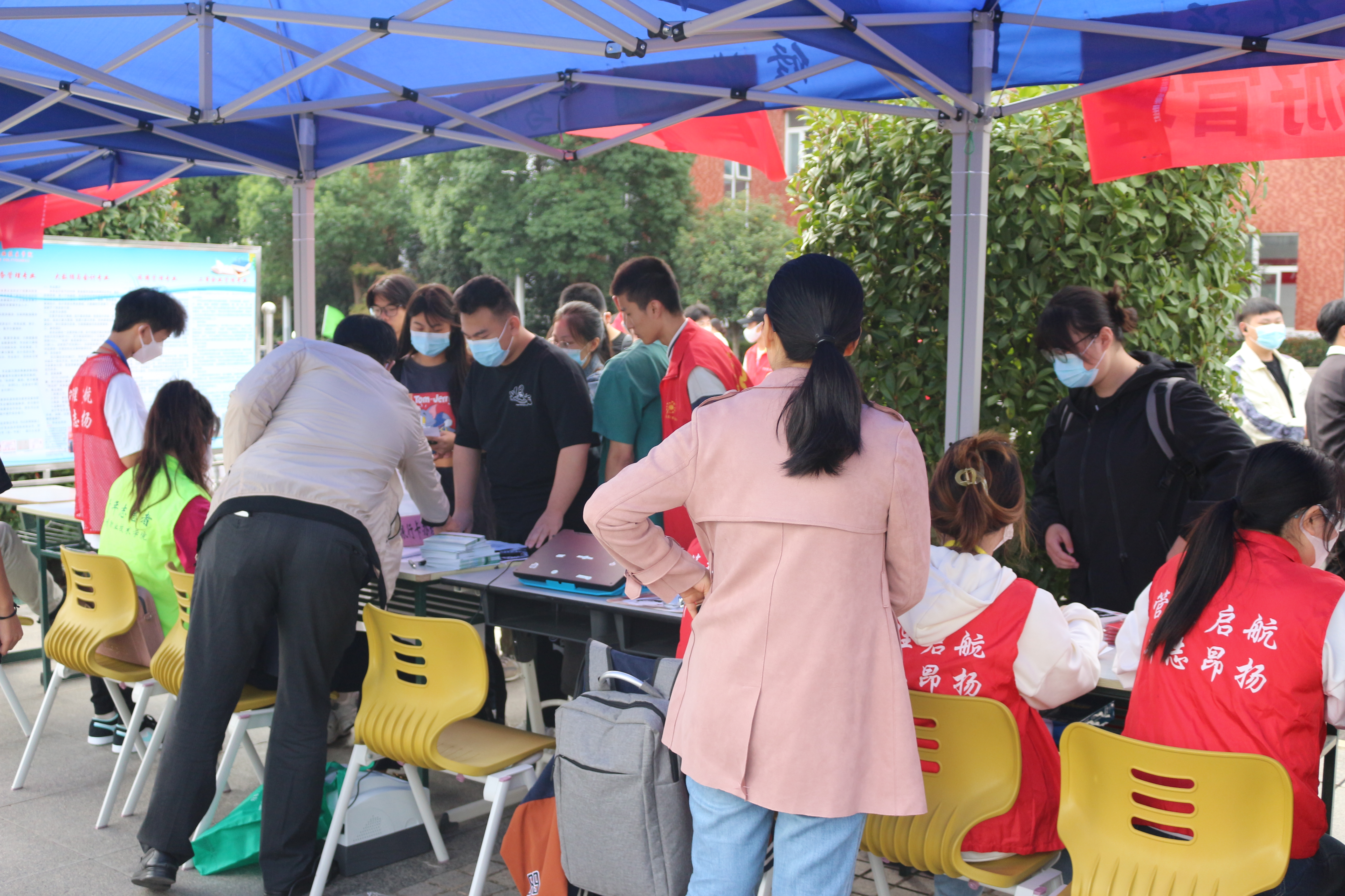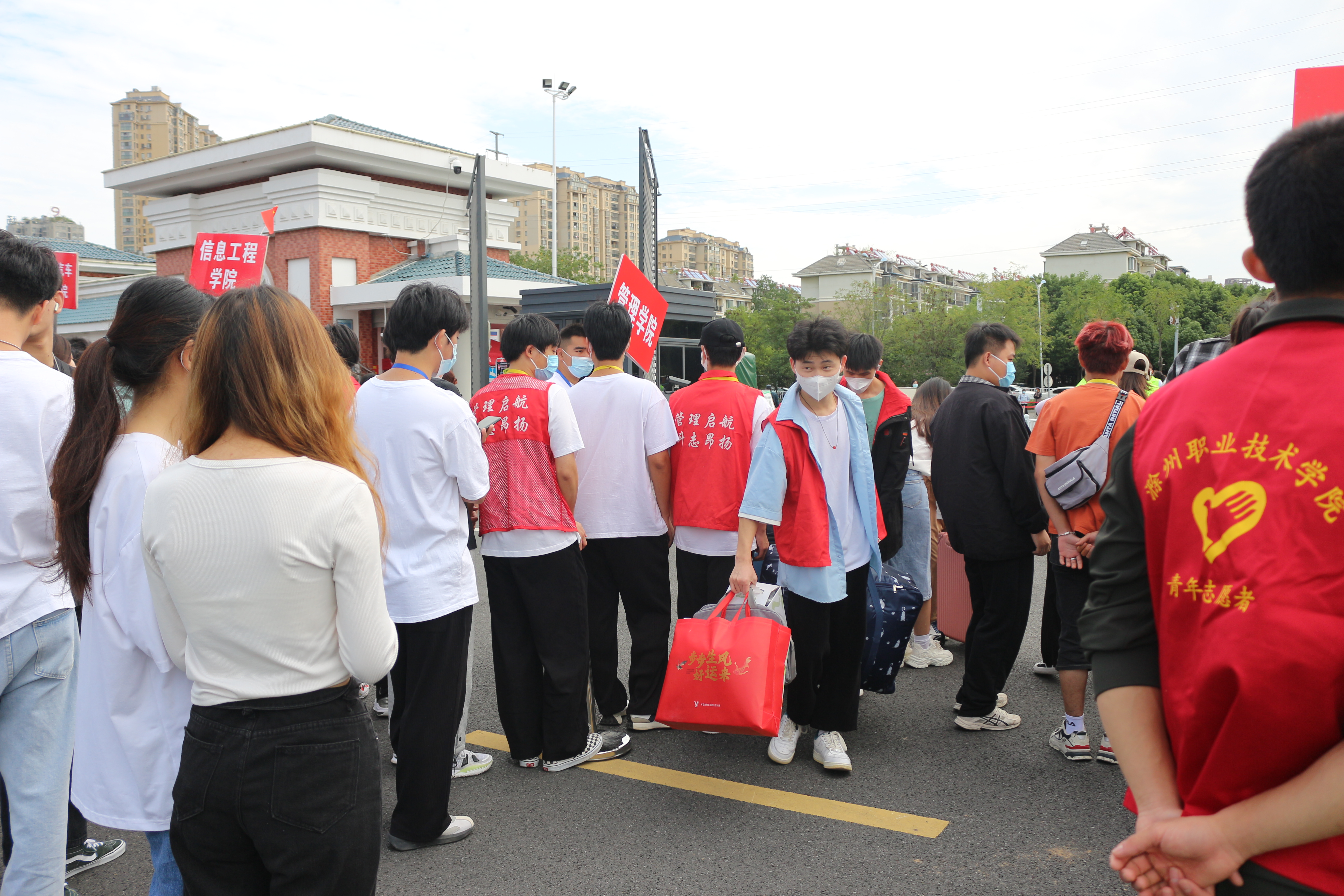 如果说高中生活是一张素描,那么大学生活就是一幅绚丽多彩的油画。新生们陆陆续续前来报道,一张张崭新的面孔为校园注入了新的活力。志愿者们穿着红色马甲、佩戴工作牌,穿梭在学校里,他们热情地帮助新生拎行李,带领新生办理入学手续,引导新生入住宿舍,细心向新生介绍学校各楼宇的分布以及校园生活的注意事项。他们忙碌的身影成了学校里一道亮丽的风景线。迎新工作紧张而有序的进行着,学长学姐们的热情肯定会消除新生们初来乍到的陌生感吧!