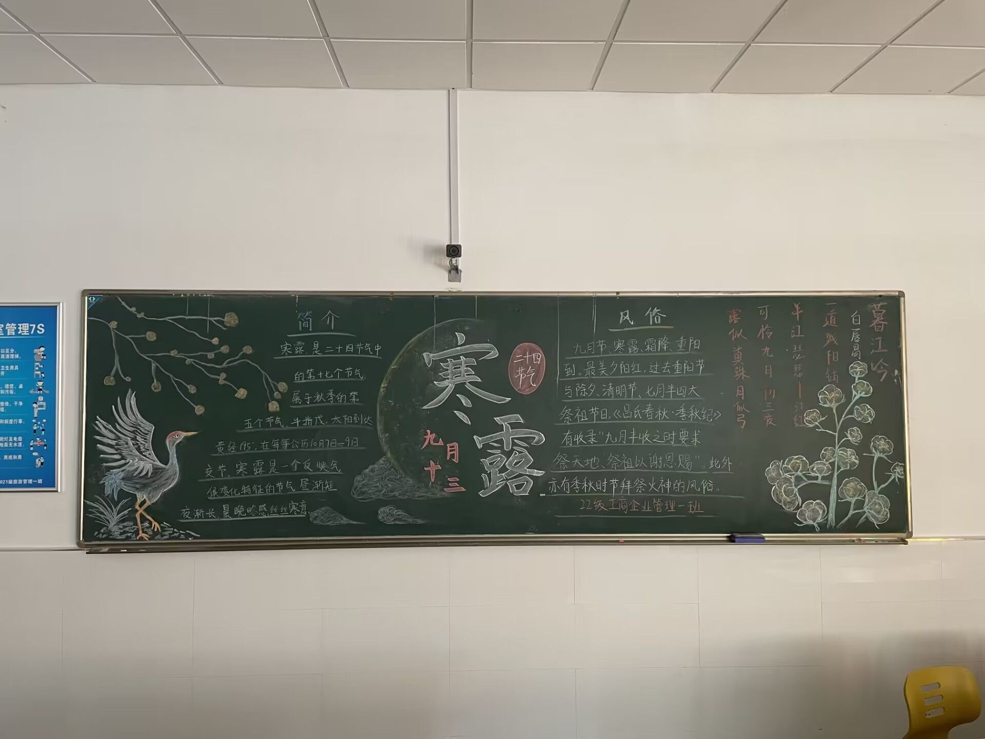 一场秋雨一场寒。10月8日是今年二十四节气中的寒露,在寒露到来之际,管理学院学生会举办“风寒露中秋意浓”黑板报活动。