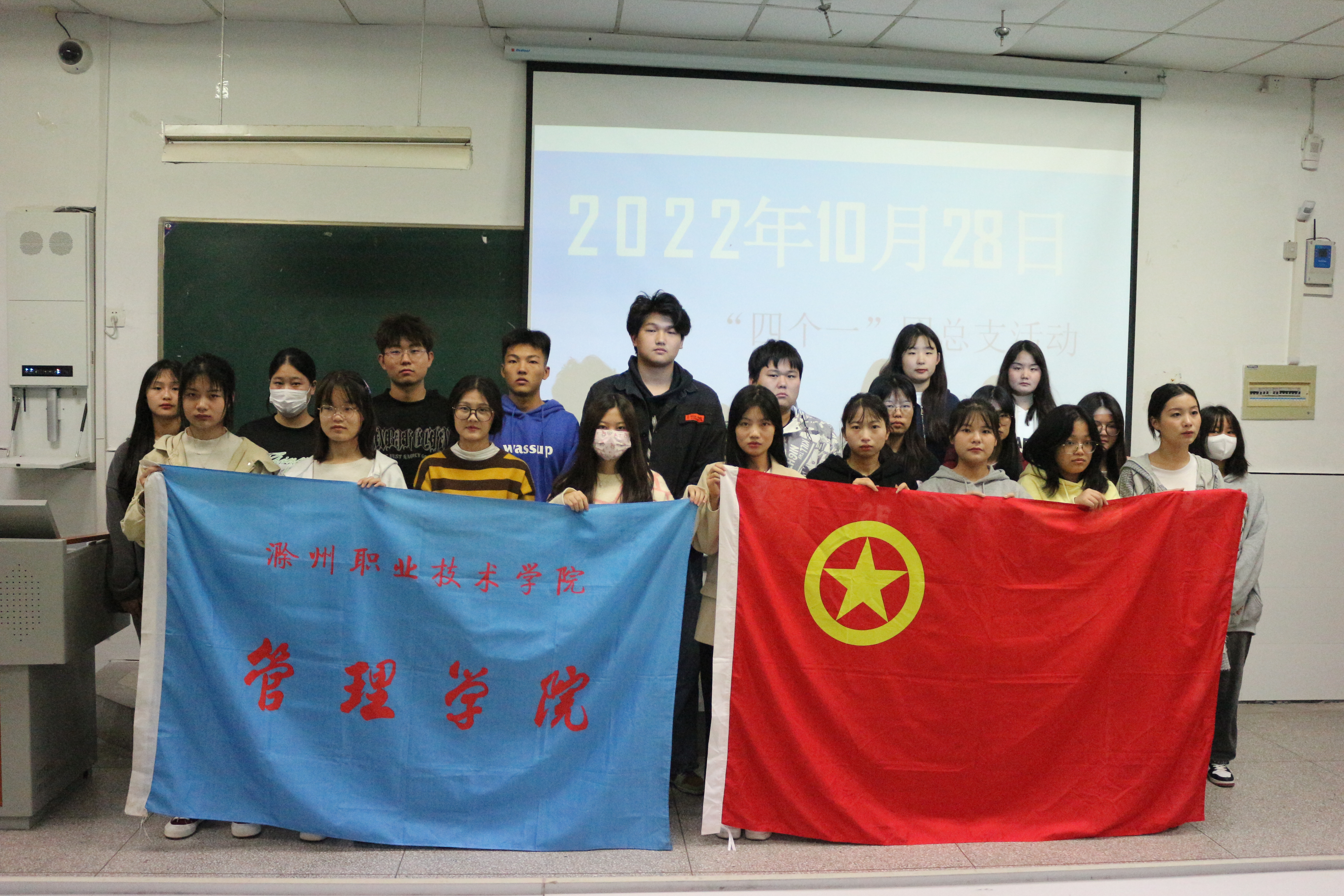 管理学院团总支于2022年10月28日下午18:00在1102教室召开“四个一”团员教育之团情学习活动。