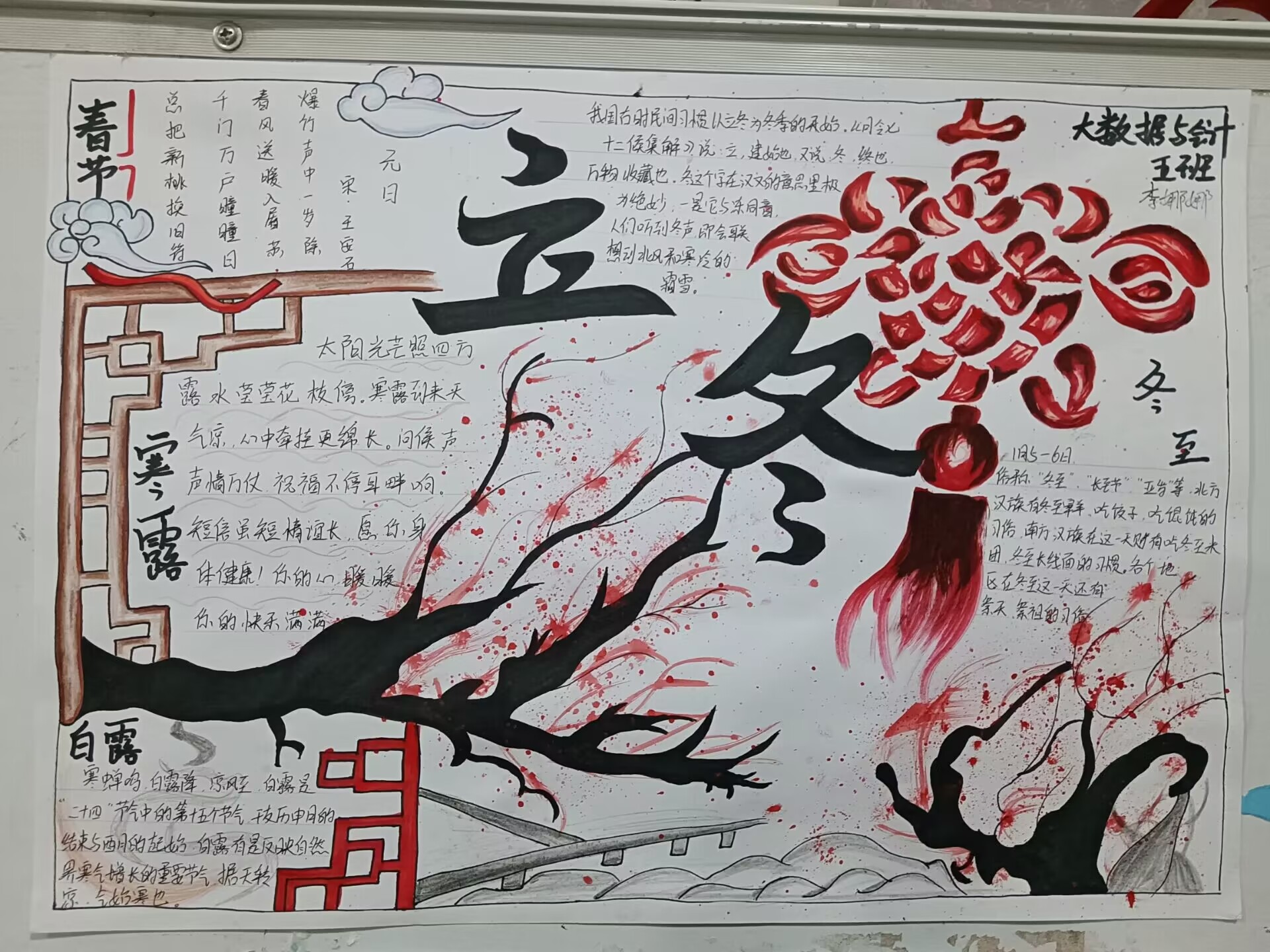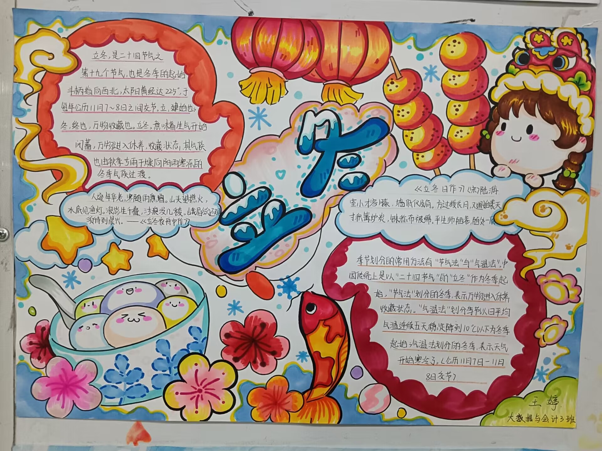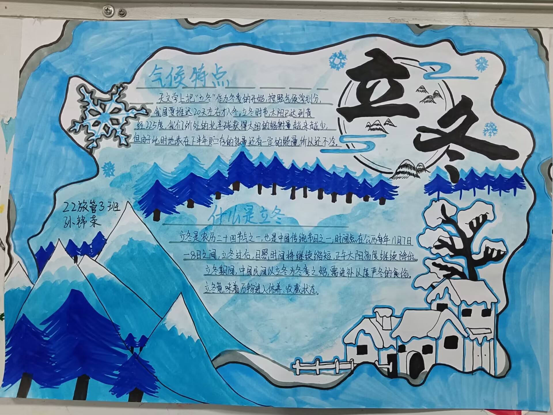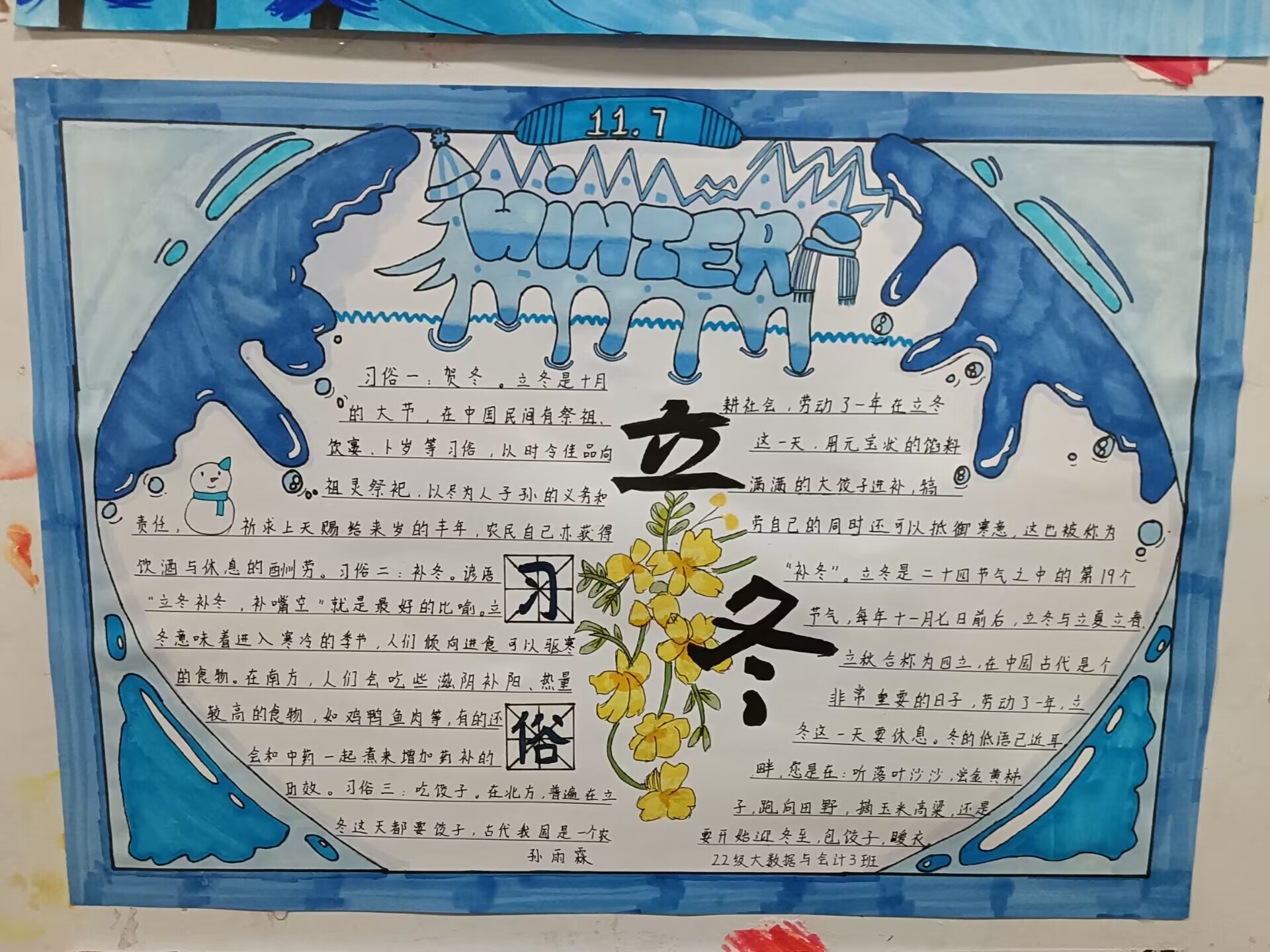 立冬表示冬季自此开始,为迎接冬季的来临弘扬中华民族传统文化,管理学院举办了“知岁一寒,立藏于冬”的手抄报活动。