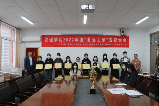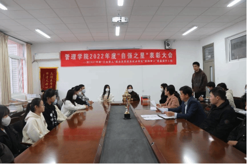 为进一步推进资助育人工作,弘扬自立自强、拼搏奋斗精神,11月22日,管理学院顺利举办了2022年度“自强之星”表彰大会。管理学院党总支书记耿学刚、相关工作负责老师、获评“自强之星”荣誉称号的10名学生以及22级各班学生代表参加。