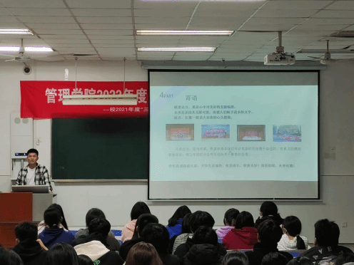 为进一步发挥榜样的带动作用,营造良好的学习氛围,帮助大一学生明晰学习目标和人生方向,11月22日晚,管理学院开展了“自强之星”优秀事迹宣讲活动。参加本次分享的是管理学院“自强之星”荣誉称号获得者李江明,22级旅游管理专业、22级大数据与财务管理专业部分同学参加。