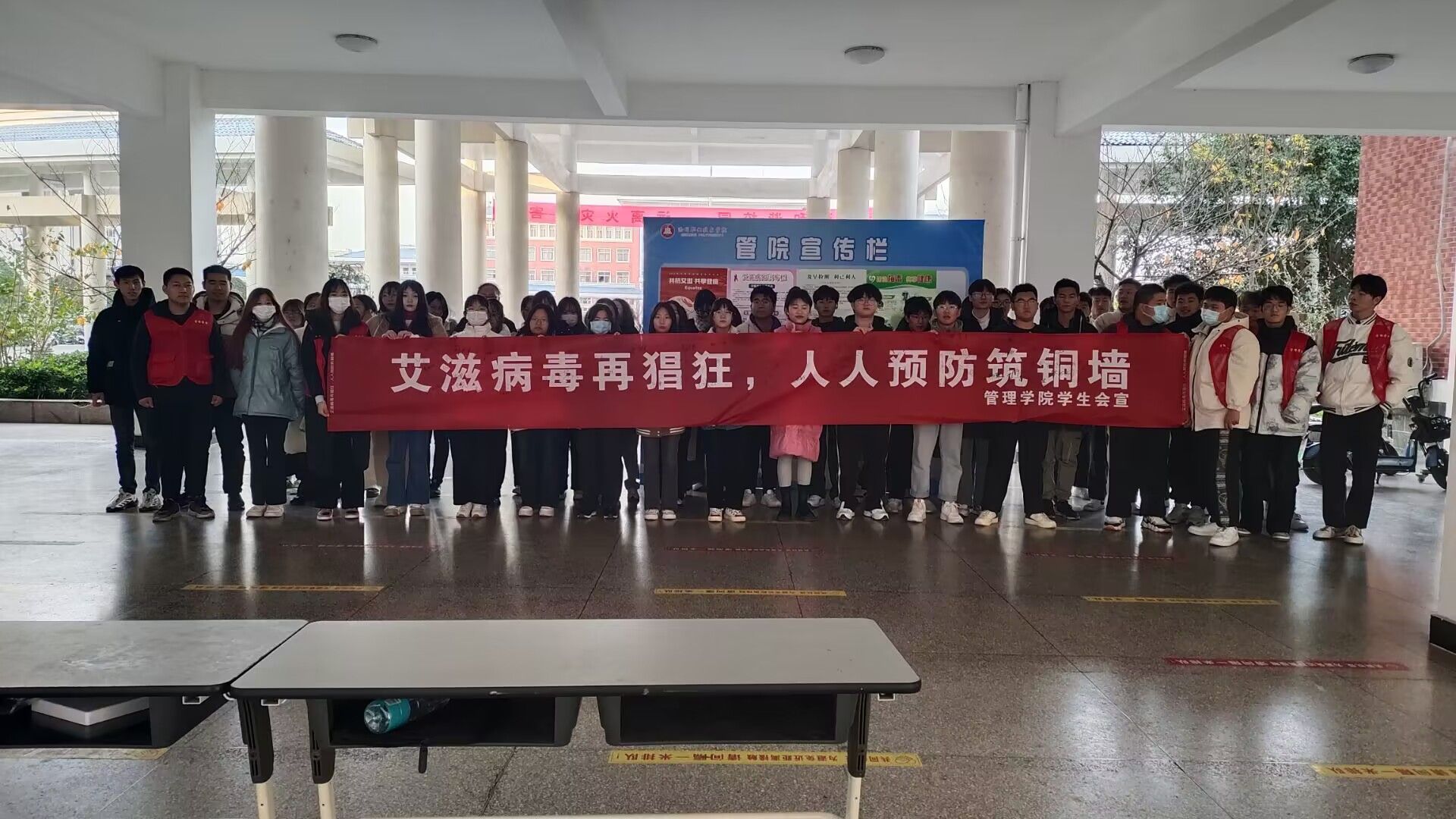 为了进一步宣传预防艾滋病知识,确保同学们的身心健康和生命安全。2022年12月1日,管理学院学生会在致真楼大厅举办“艾滋病日签字”活动。