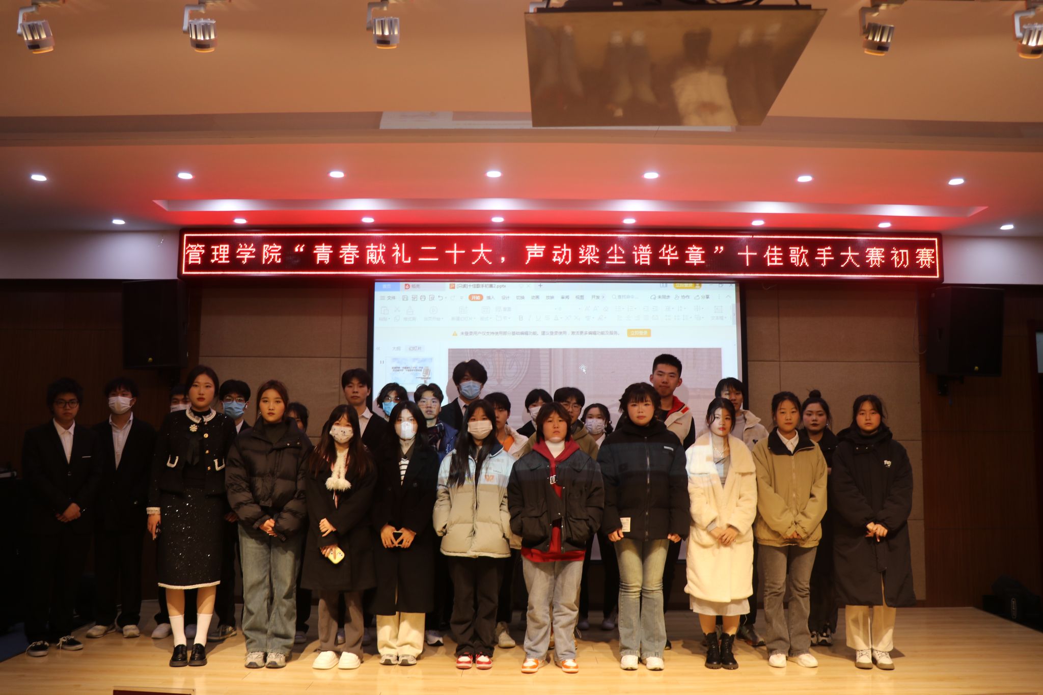 2022年12月4日,管理学院学生会举办的“校园十大歌手”初赛在南阶203隆重举行,管理学院学生会主席、各位部长作为评委出席了本次活动。