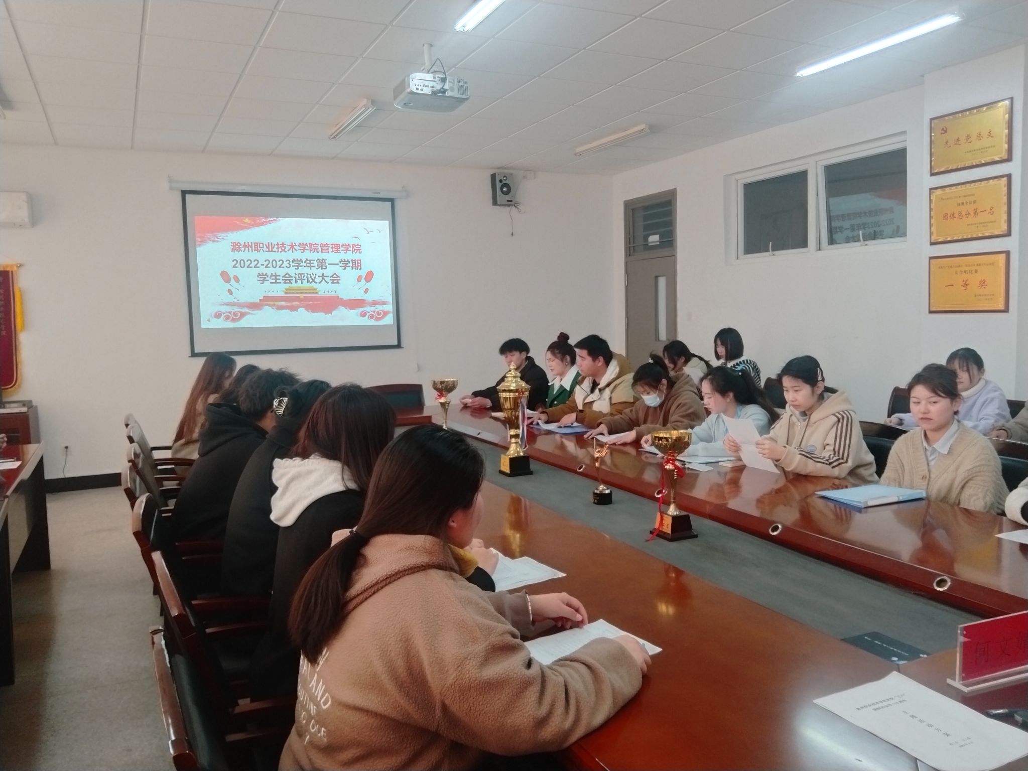 2023年3月1日,管理学院学生会在致真楼1405教室进行学生会述职报告大会。学院党总支副书记何文婧、团总支书记袁一以及学生会全体干部参加。