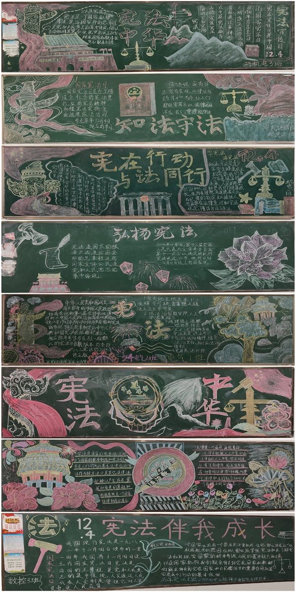 12月8日至10日,电气工程学院积极响应国家法治建设号召,精心策划并成功举办了以“宪启·智明·行正”为主题的黑板报设计活动。此次活动旨在通过创意展示与互动学习,深化我院青年学生对宪法的认识与理解,培养法治思维,为构建和谐校园、法治社会奠定坚实基础。各班团支部全体成员积极参与,共同绘制了一幅幅充满创意与深意的宪法主题黑板报,展现了电气学子对宪法精神的深刻领悟与积极践行。
