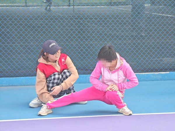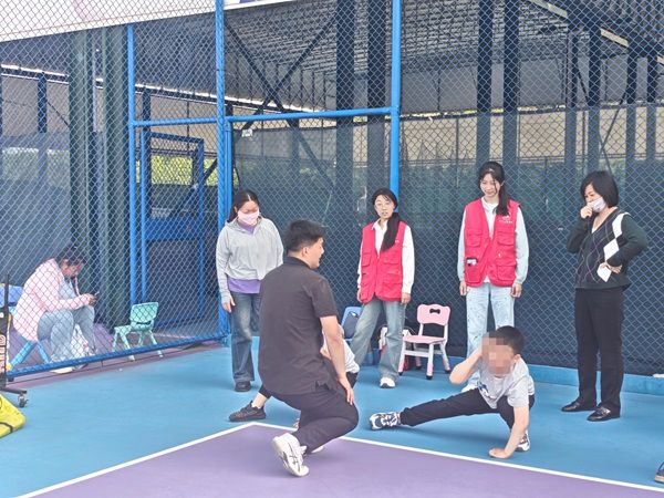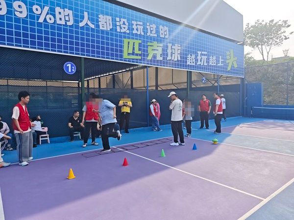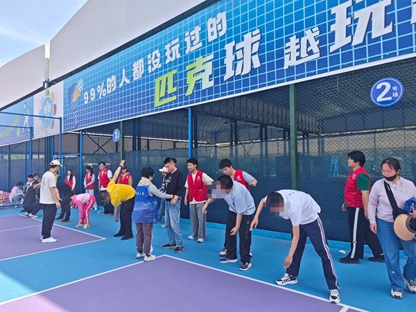 运动前,教练带着孩子们在户外进行拉伸运动,放松身体,为了接下来的运动做准备。在训练时,教练耐心教授如何去控制自身身体的方法,让孩子们在过程中不断地加强着对自身的控制力。场地的管理员们还提供了匹克球道具,志愿者们和家长们一起与孩子们打匹克球,和乐融融。