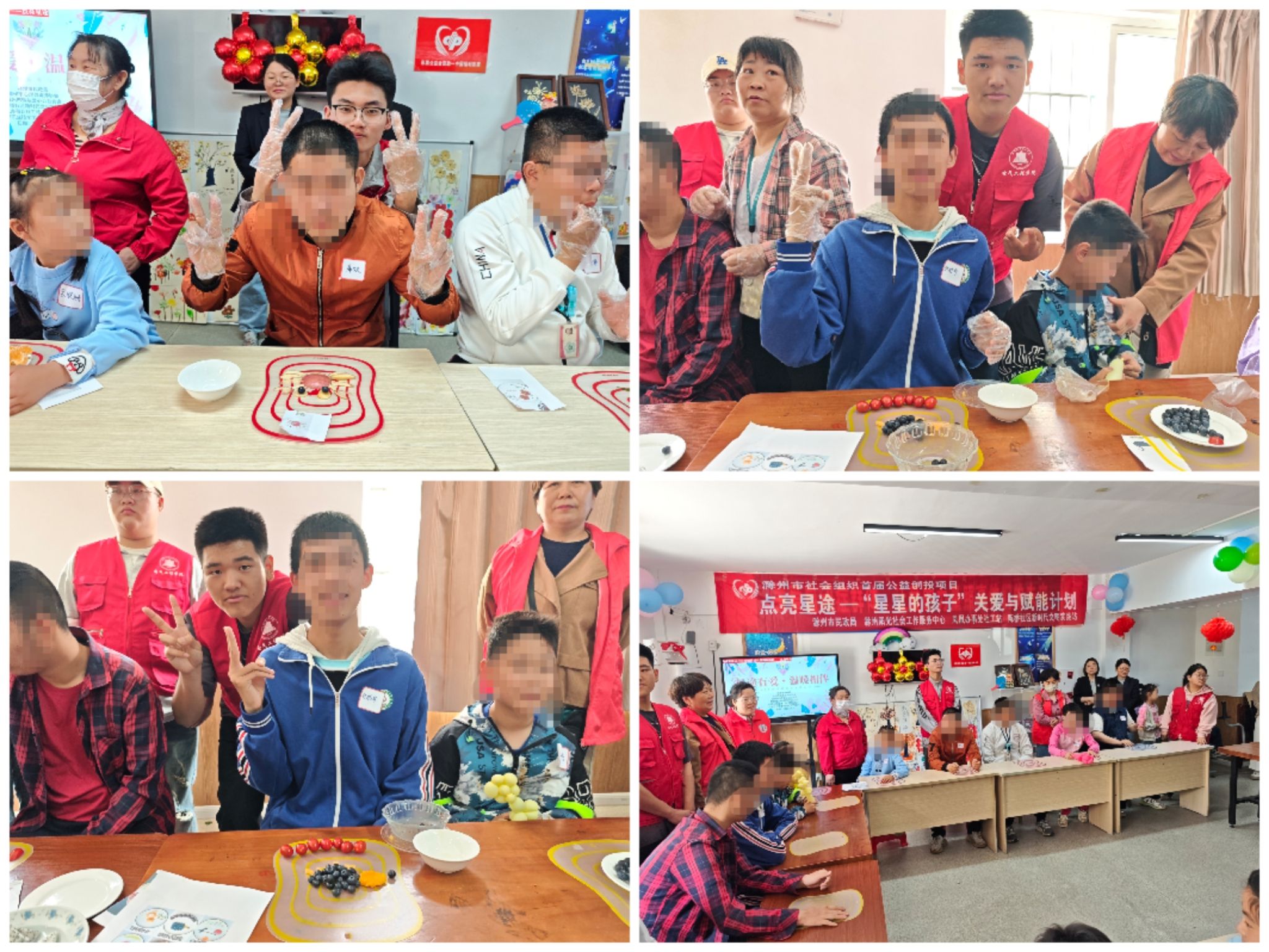 活动当日,志愿者们提前来到活动场地,互相帮助准备活动要用的水果,并布置活动现场,将现场装点得充满节日氛围。随后的互动环节,志愿者带领孩子们一起玩游戏,在“水果拼盘diy”“桌面飞球”“飞镖得分”“水果猜猜猜”“蒙眼找孩子”等游戏中,大家相互配合,欢声笑语不断。孩子们不仅收获了快乐,更与母亲有了亲密的互动。游戏结束后,志愿者们将准备好的水果蔬菜沙拉和糕点与“星星家庭”分享。