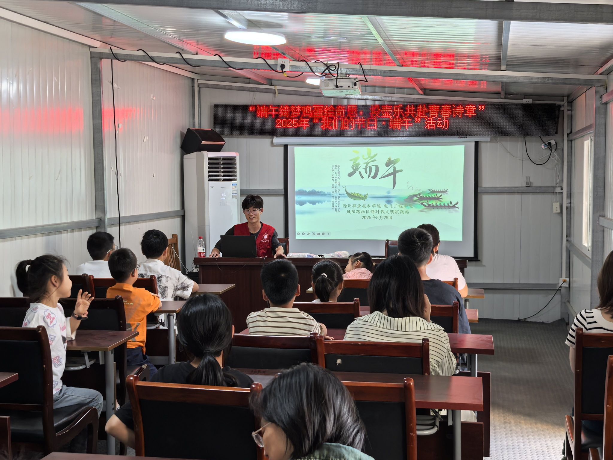 5月25日下午,学院团总支携手凤阳路社区新时代文明实践站联合开展了“端午绮梦鸭蛋绘奇思,投壶乐共赴青春诗章”端午节团日活动,凤阳路社区青少年与电气工程学院志愿者共赴一场传统文化之约。