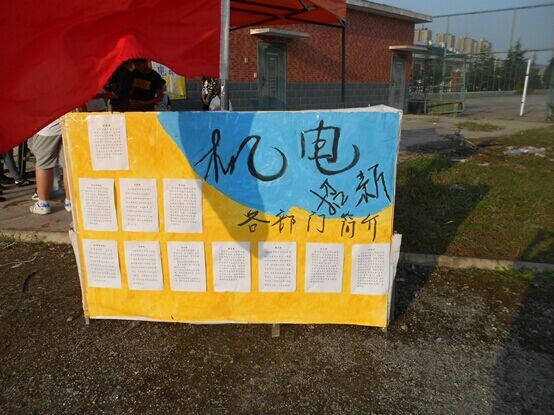 9月21日,机电系学生会各部长亲自来到军训方阵,趁休息期间为大一新生们讲解学生会的日常工作和责任,并且表示热烈欢迎新生们报名参加,引起了新生们的强烈反响,报名者络绎不绝。并张贴海报放在服务点,让新生们了解之后再去选择,择适者入。