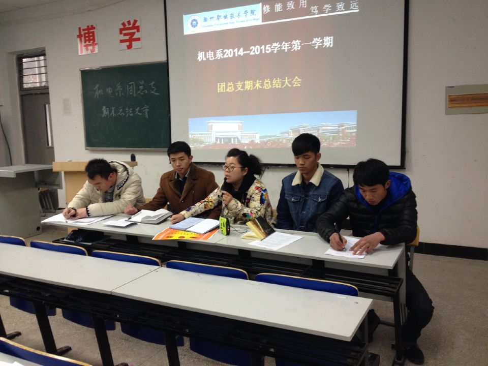 1月7号下午4点由Beat365唯一官方网站机电工程系团总支开展期末学习总结大会。在5102教室顺利举行,本次大会上,机电工程系团总支负责人谢丽丽老师出席了此次总结大会,同时参加此次活动的还有团总支、学生会、系部所属社团以及机电系各团支部成员。