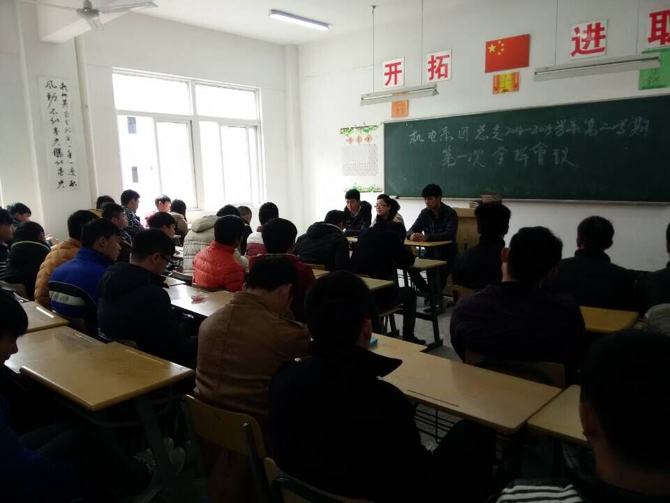2015年3月9日中午机电系团总支在5305教室召开了新学期第一次全体会议,出席本次会议的有机电系团总支负责人谢丽丽老师和机电系团总支、学生会、社团全体成员。