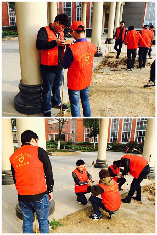 2015年3月24日下午,机电工程系“拦路小分队”来了!他们用竹竿搭起了象征着文明与爱心篱笆,为小草围起了一个温暖的家。志愿者们还在空地和篱笆下播撒了美丽的鲜花种子,愿等到花开遍地的时候,能够让这片土地为春天添加一分生机与文明的气息。