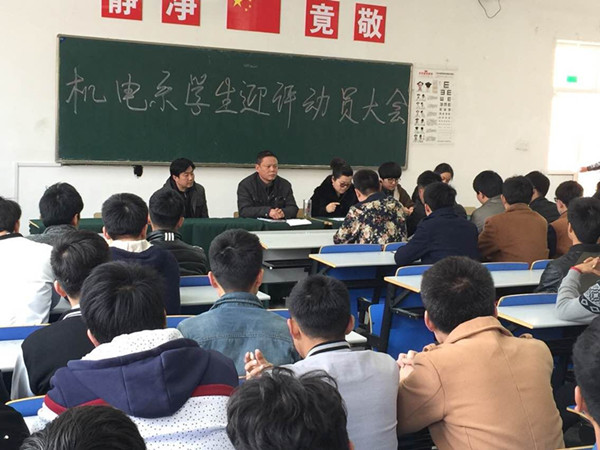 首先由我系团支部负责人谢丽丽宣读机电系学生迎评工作实施方案;接着我系团支部副书记张子帅同学宣读了倡议书,希望大家努力做到倡议书上的要求。最后,晋书记就迎评工作对大家提出了要求,介绍了学校迎评工作的进展情况,分析了迎评工作的性质、重要性以及如何开展学生迎评创优活动。迎评工作人人有责,希望同学们能够做好本职工作,为学校迎评工作作出自己的一份努力!