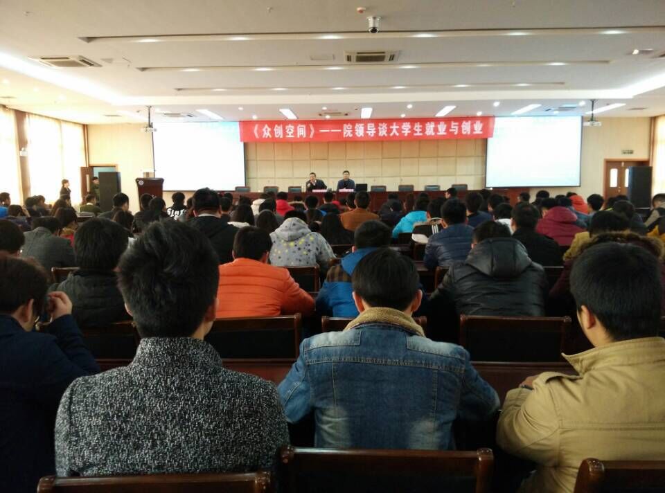 2015年12月2日下午,由机电工程系、地方高职院校创新创业教育名师工作室联合主办的《众创空间》在我院综合楼5楼报告厅举行。院长助理、招生就业处处长、全国首席职业指导师穆松应邀为广大师生做了《院领导谈大学生就业与创业》的主题报告。活动由机电系党总支书记晋太洋主持,地方高职院校创新创业教育名师工作室成员谢丽丽、朱兰芳、冯早红等老师出席本次活动,机电系16届毕业生、大学生创业中心、职业发展协会成员参加了本次活动。