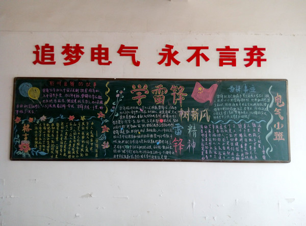 同学们把对雷锋同志的尊敬和怀念之情投入到了黑板报的创作之中,板报全面的介绍了雷锋全心全意为人民服务的精神,使同学们体会到了雷锋精神的真正含义。最终,15机电(5)班在本次评比中获得桂冠。