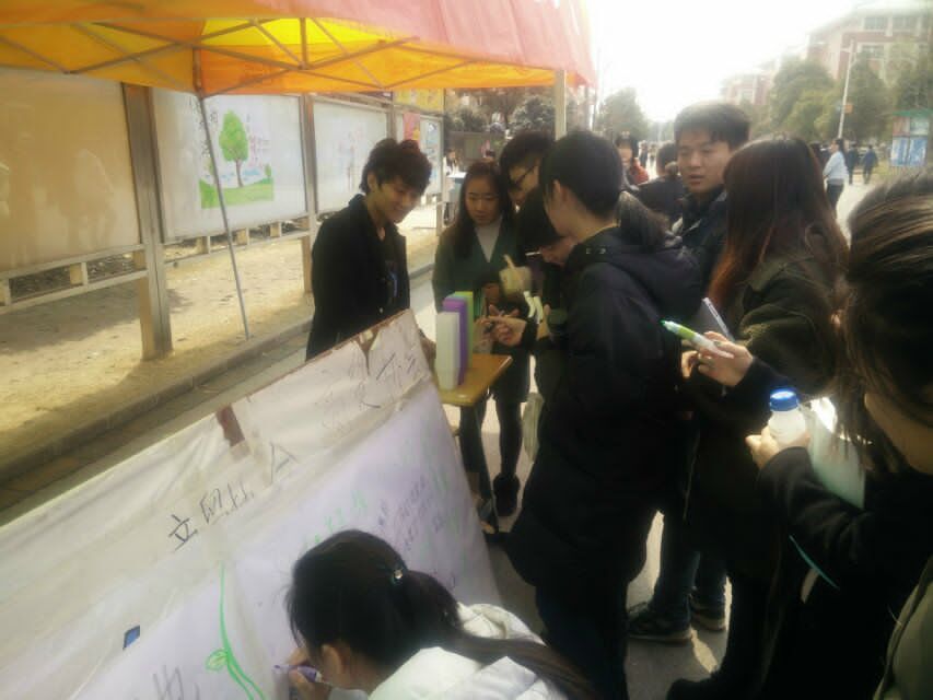 为了增强大学生环保意识,共建绿色环保校园。机电系商贸协会于3月10日中午12:00在宿舍楼前开展了以“种子变绿植 ,低碳在身边”为主题的绿色植物种子领养活动 。