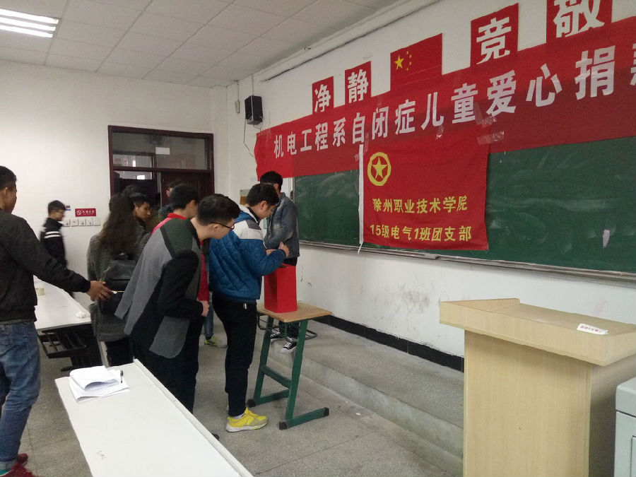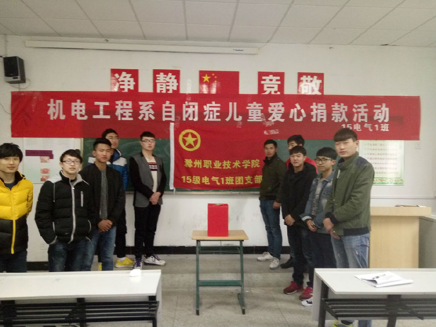 为了弘扬和学习“奉献、有爱、互助、进步”的雷锋精神,机电系15电气(1)班于2015年3月15日中午在5103教室开展“点亮星星,爱心捐款”。为北门星星家园的自闭症儿童献出自己的一片心意。