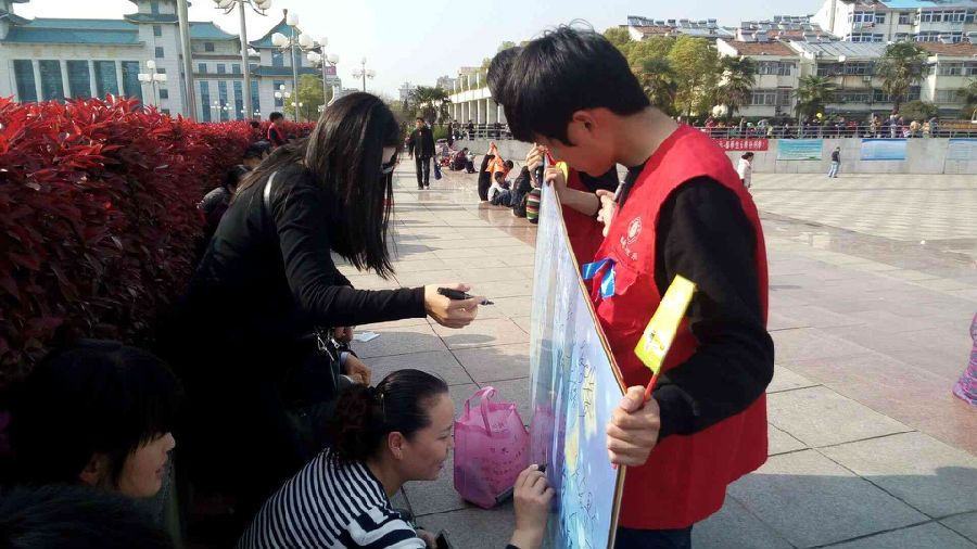 4月2日是第九个“世界自闭症日”,4月1日下午,由滁州市残联、琅琊区政府、北门公共服务中心党工委主办的世界自闭症日公益宣传活动在人民广场举办。机电系青年志愿者在我系团总支副书记张宏影、学生会主席岳德辉的带领下前去进行志愿服务。
