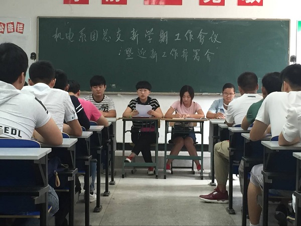 开学在即,为了提高新学期的工作效率,同时方便新生更好的熟悉新环境,2016年9月8日中午十一点半,机电系团总支于5103教室开展了新学期工作会议暨迎新工作部署会。会议由我系团总支书记张文主持,团总支副书记、学生会主席及迎新工作学员参加了本次会议。