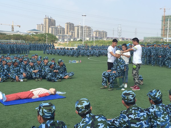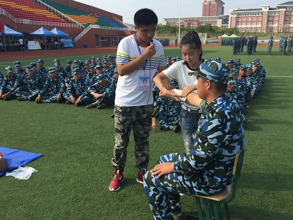 生命诚可贵,然而生命有时却又是如此的脆弱。作为当代大学生,在学习知识、提升能力、培养品质、锤炼意志的同时,也应该进一步学会并具备自救互救的技能,掌握现场救护的方法与手段,从而更加科学、正确、有效地应对突发事件给生命带来的风险与危险。2016年9月18日下午,机电系在军训现场针对新生开展初级救护技能普及培训。