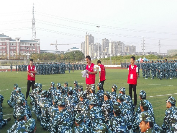 下午五点,志愿者们趁着军训间歇时间,积极穿梭于军训队列中,向新生讲述九一八事变的来龙去脉,调查了同学们对于不文明爱国的理解,宣扬“爱国需要的不仅仅是无处安放的热情,也需要理性的头脑和包容的心灵”的正确思想。同学们积极回应,列举出砸日本车、肯德基围堵事件等缺乏理智的不文明爱国现象,表示抵制不是爱国的最佳选择,“理性爱国,知识报国”才是值得称颂的爱国情怀。