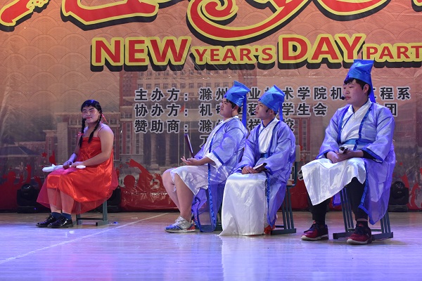 在激情炫酷的开场舞之后,晚会正式拉开序幕。动漫社的《想在辉夜城起舞》、艺术团的《Any way》即唯美又帅气;除了舞蹈节目还有深情动人的歌曲《其实都没有》、《广东爱情故事》、《滁职版成都》轮番上演,或浪漫温馨、或轻快悠扬、或活泼动感、风格各异,让观众心旷神怡,沉浸其中。而令人捧腹大笑的到来小品表演《吃面》、《装鳖的人》、《四大才子》,更是让观众乐不可支,幽默风趣的台词,滑稽搞笑的动作引得观众们掌声连连,欢笑不断。朗诵《中国梦》也是在在欢快的气氛中添加了一丝庄严,随后的舞蹈《是你》《串烧》《交织》也引起观众的热烈响应,我系的四位女老师合唱的一首《远走高飞》更是将晚会推向高潮。节目间隙还穿插着抢板凳、现场抽奖等游戏,让观众一起来互动融入其中,美好的时光总是匆匆而过,晚会在小合唱《不忘初心》表演中圆满落幕。