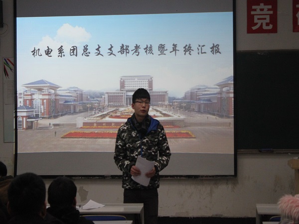 首先由各班团支书代表进行本学期工作陈述,内容包括团支部建设、团日活动、团员的注册和转入等。每个团支部向大家展示了本班在这学期的收获,并表态朝着活力团支部前进。随后团总支各部门部长进行本学期工作汇报;最后李东风对机电系团总支这一学期的工作进行了总结,对所有团总支的干事进行了评价,同时也鼓励大家在新的一年能够更加努力,认真做好自己的工作,为我系团总支和同学们奉献出自己的一份力量。